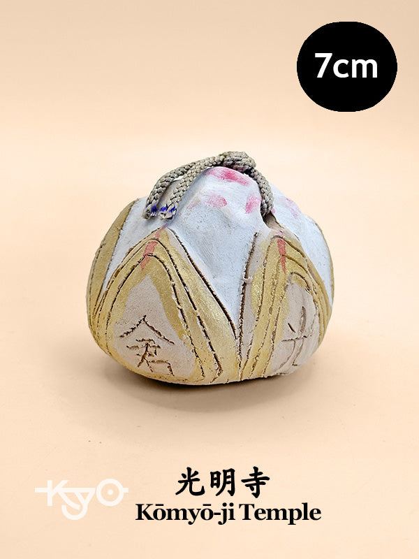 Kōmyō-ji is the largest temple of the Jōdo-shū sect in Kamakura and is known for its majestic wooden gate and peaceful garden. Temple bells like this one are often sold as talismans for good fortune, protection, or spiritual connection.