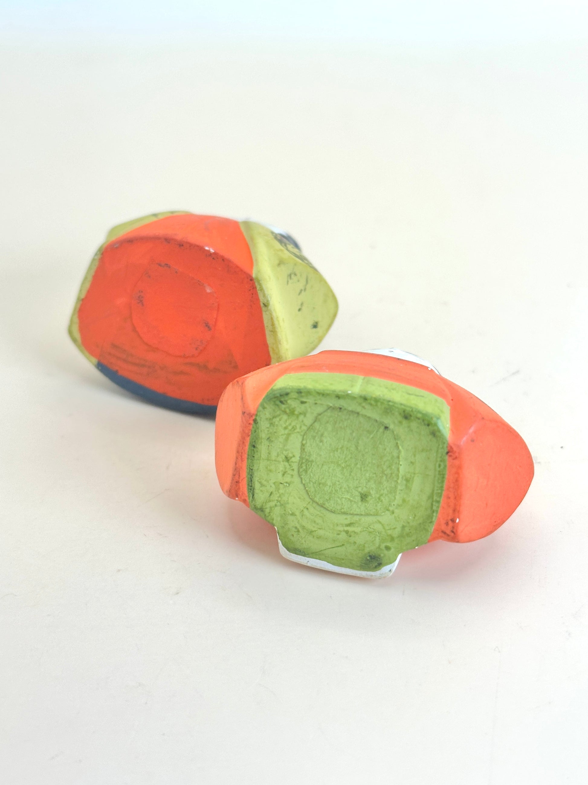 This pair of clay dolls is an example of Kyō Ningyō (京人形) — traditional Kyoto dolls — crafted by Tanaka-ya (田中彌), a long-established doll-making house since 1808 in Kyoto known for producing elegant Hina and Gōfun-style figures. These particular dolls represent a miniature Hina Ningyō couple, typically displayed during Hinamatsuri (Girls’ Day) in Japan, a celebration that wishes for the happiness and health of young girls.