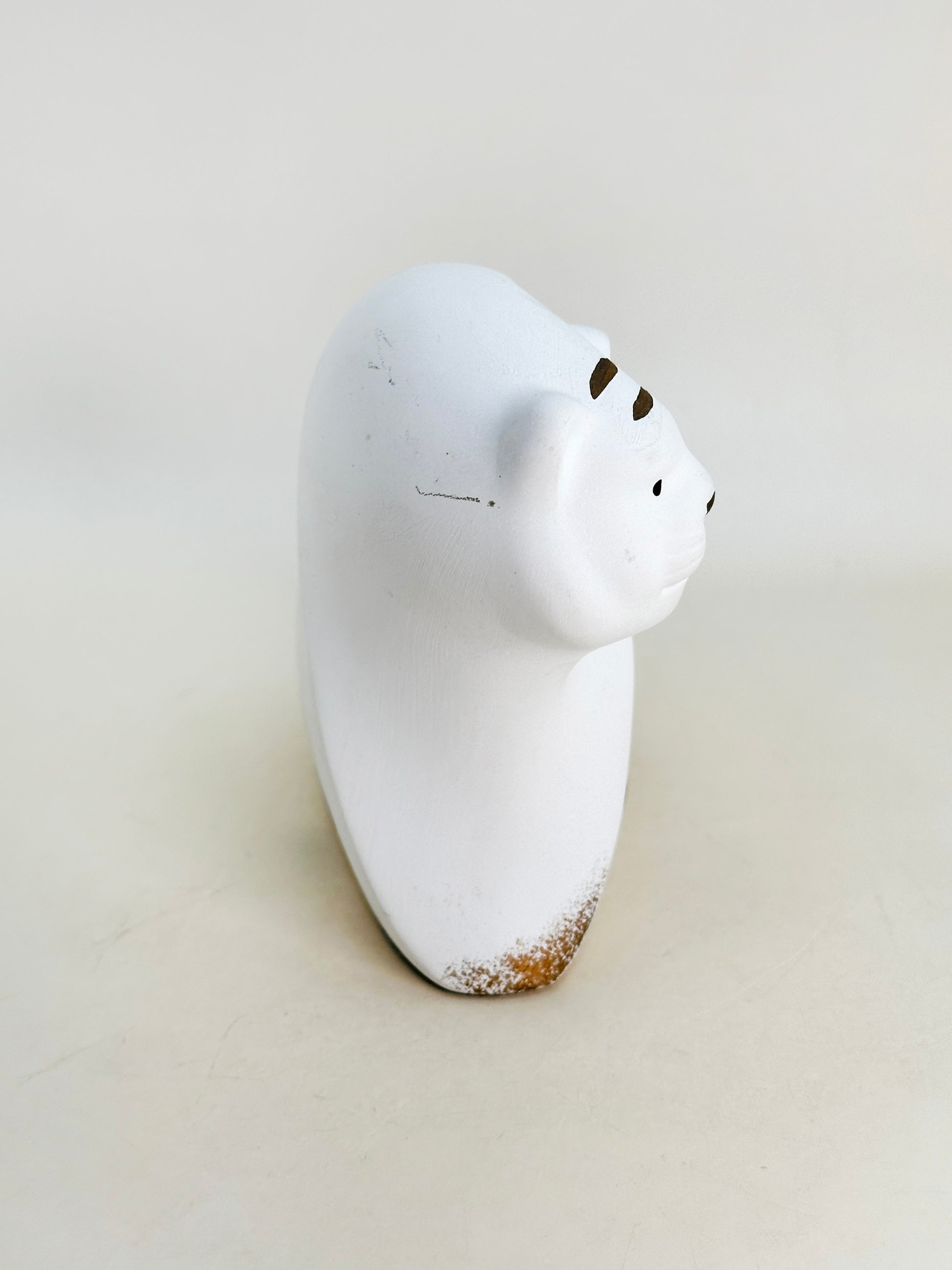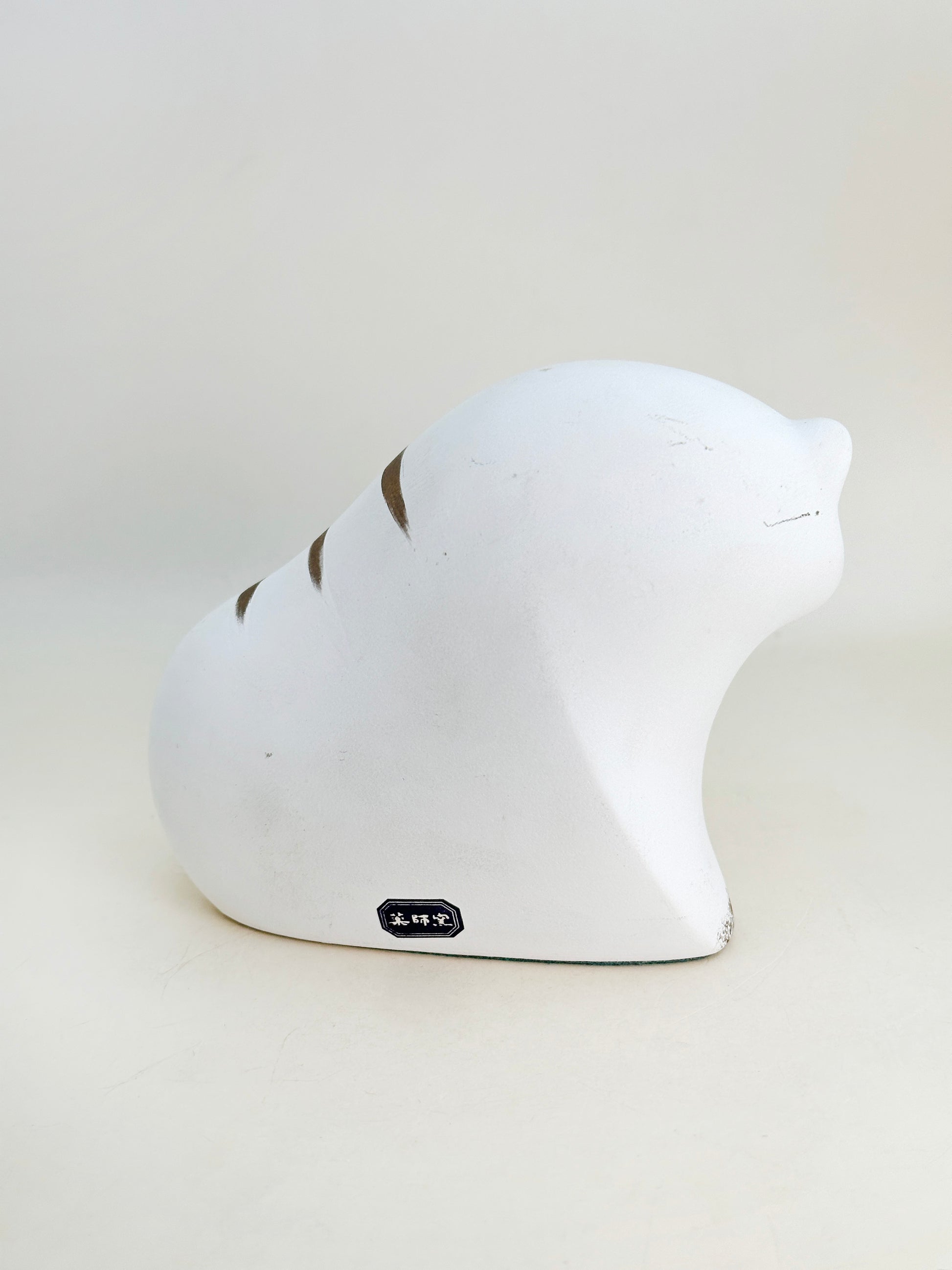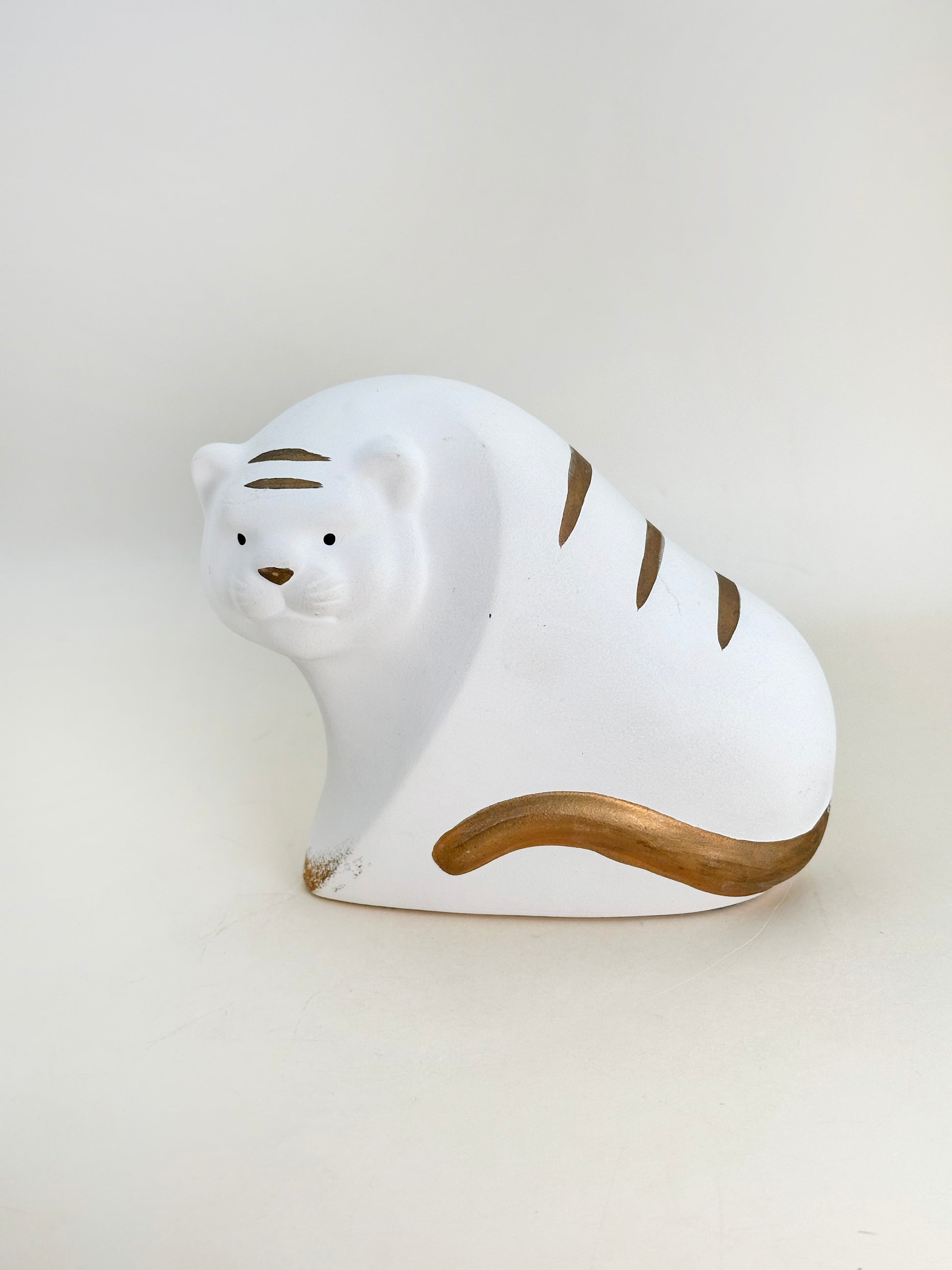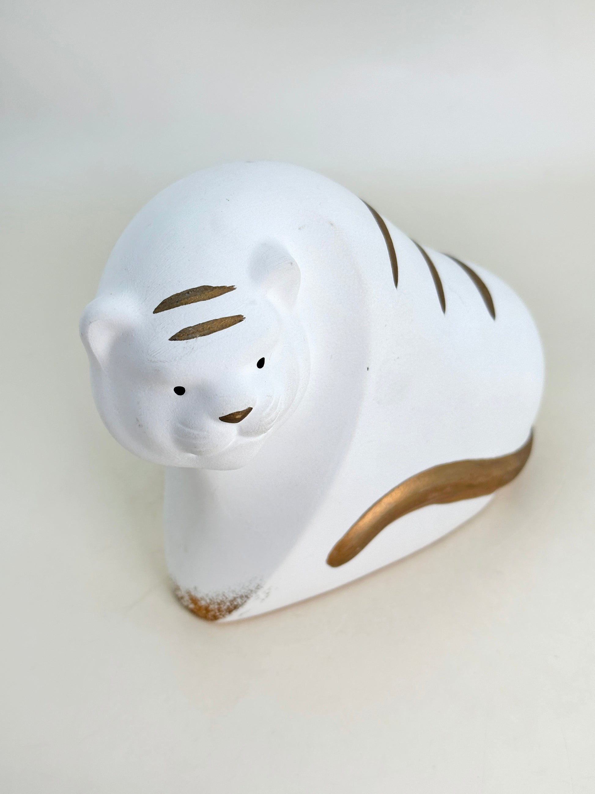 The tiger is sculpted with a smooth, minimalist form and hand-painted with soft golden stripes and a friendly expression, capturing both strength and gentleness. Finished in a matte white glaze with subtle accents, it conveys a sense of calm and purity while embodying the Tiger's symbolism—courage, strength, and protection.