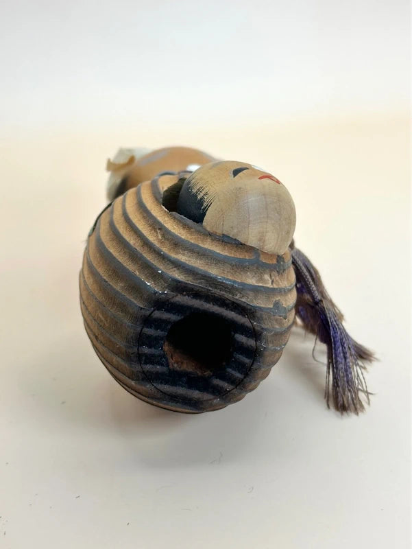 Une poupée Kokeshi vintage représentant le nodder représente avec humour le duo de voyageurs maladroits Yaji-san et Kita-san, personnages emblématiques de la bande dessinée Tōkaidōchū Hizakurige de l'époque d'Edo. Fabriquée en bois aux tons chauds et aux traits peints à la main, cette poupée capture l'esprit léger de ces deux amis dans leurs aventures fantaisistes aux sources chaudes.