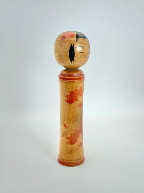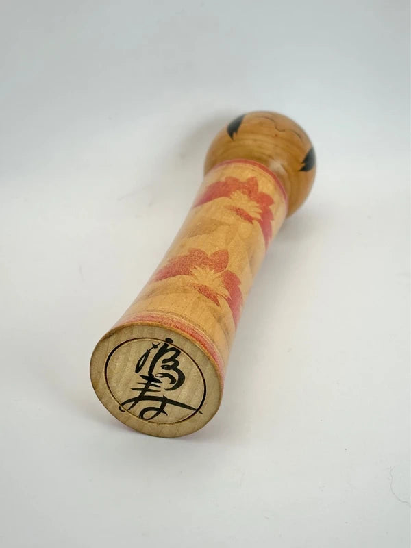 La kokeshi Naruko de Yusa Fukuju est un exemple magnifiquement équilibré de l'une des traditions kokeshi les plus emblématiques du Japon. Avec ses lignes épurées, ses tons naturels chaleureux et ses motifs floraux, cette poupée capture l'essence même de l'artisanat Naruko, qui privilégie à la fois simplicité et raffinement.