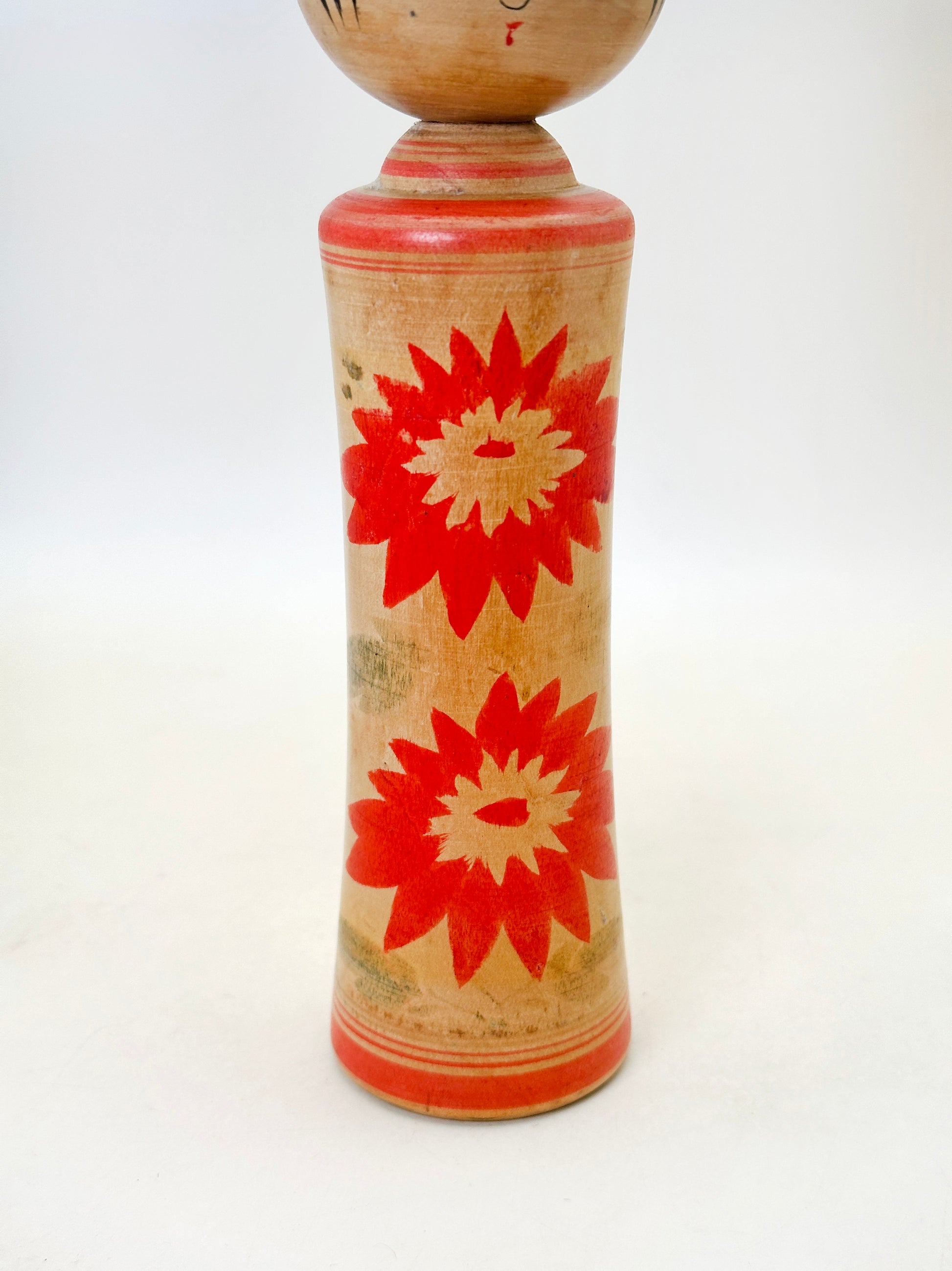 This Naruko kokeshi by Morio Takahashi 高橋盛雄 (1917–2000) is a vibrant example of the Takakan lineage, reflecting both strong tradition and the postwar revival spirit of Naruko.