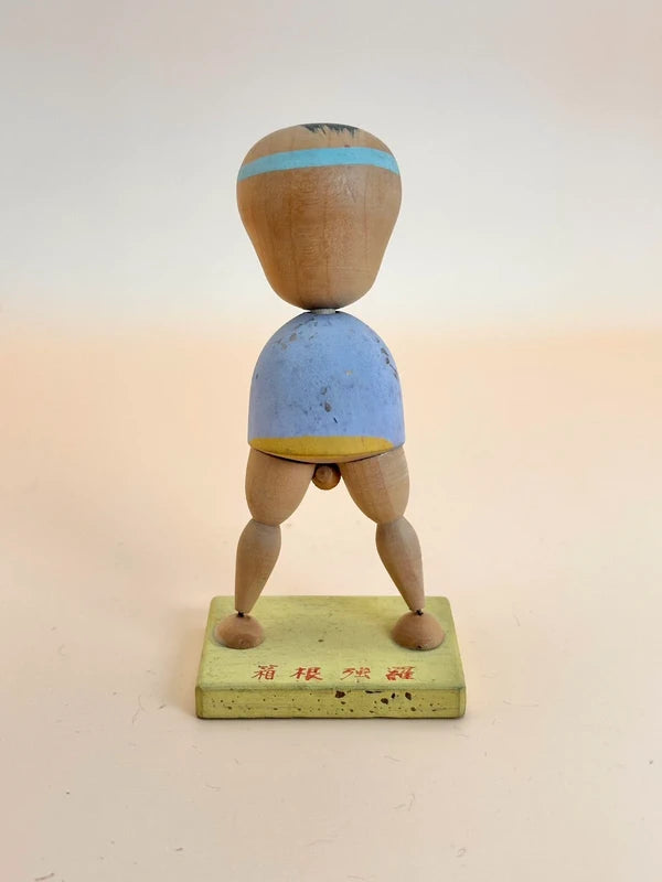 Une figurine vintage représente Kintarō, l'enfant héros légendaire du folklore japonais, dans un style artistique populaire fantaisiste et affectueux. Originaire de Gōra, Hakone, célèbre source thermale et région culturelle de la préfecture de Kanagawa, cette poupée est un souvenir nostalgique qui capture l'esprit ludique de l'artisanat traditionnel japonais.