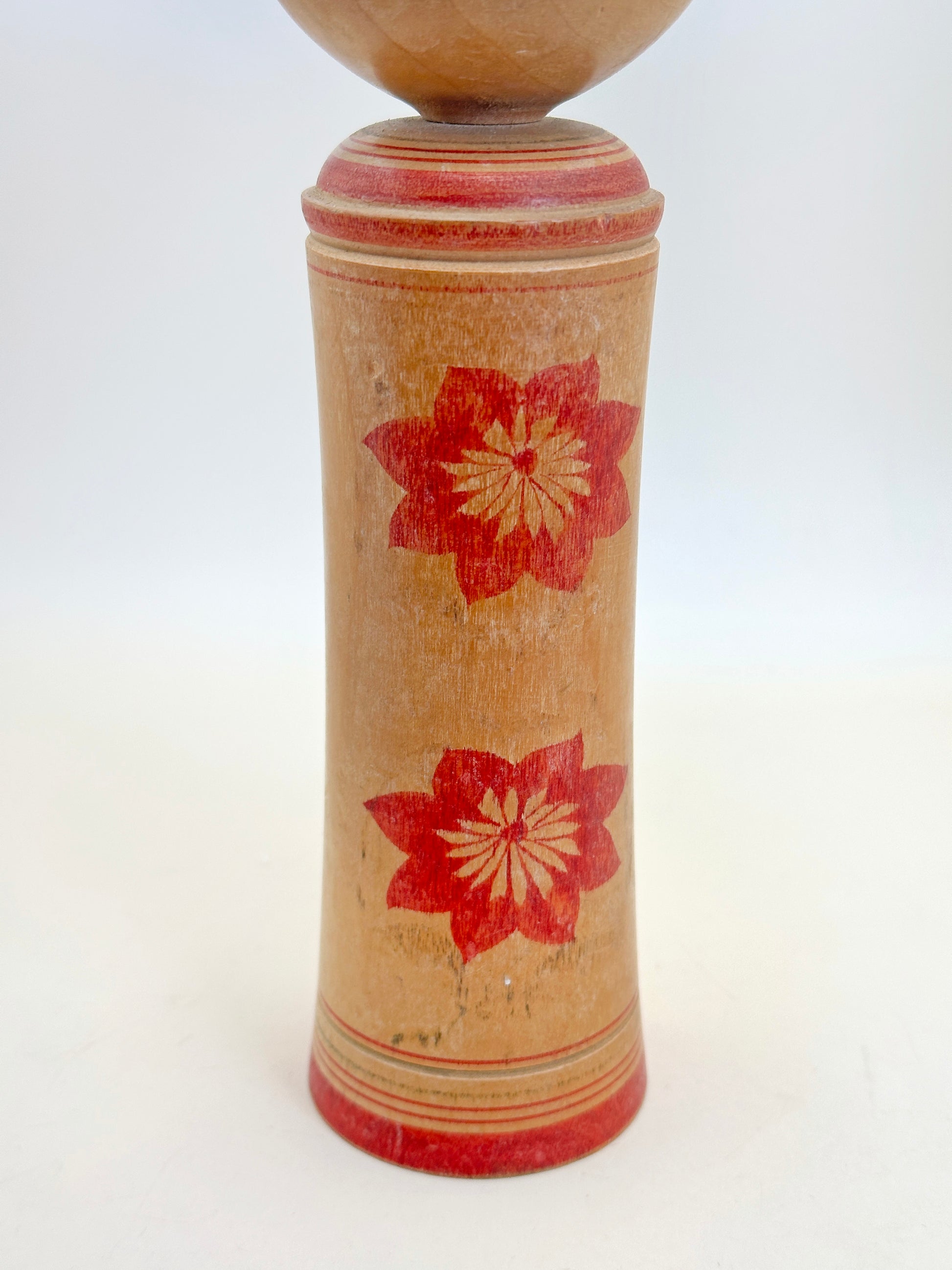 His work is characterized by beautifully balanced forms, rich red pigments, and fine brush control. Throughout his career, Igarashi Isamu remained a respected presence in the kokeshi community, contributing to regional exhibitions and preserving the heritage of his family line. His dolls are prized by collectors for their sweet expressions and painterly floral patterns.