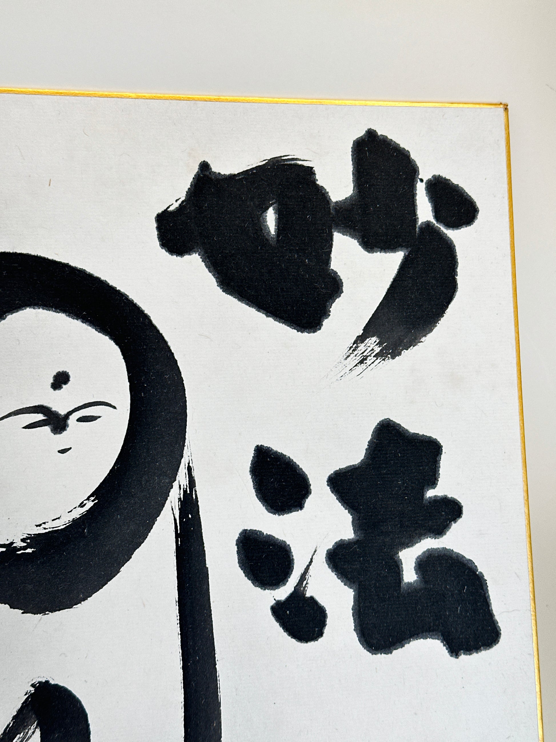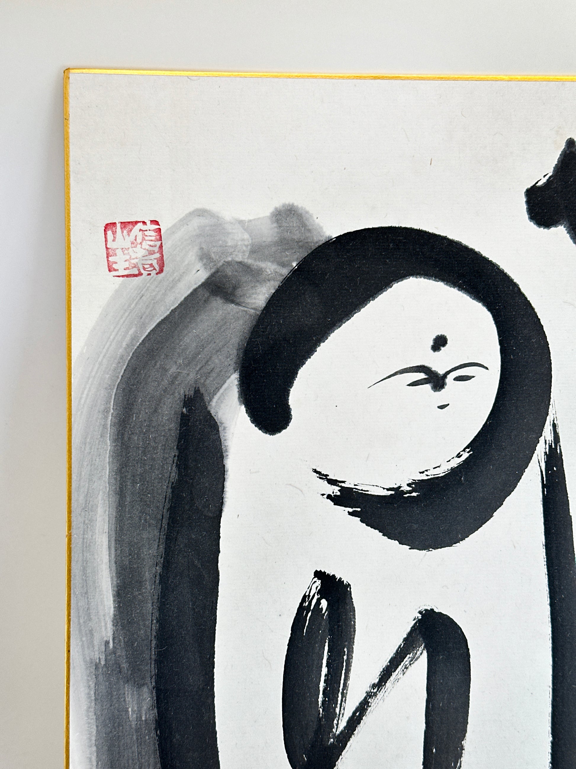 鈴木凰永 is known as a Buddhist calligrapher and ink artist whose work bridges religious devotion and expressive Zen aesthetics. His practice is rooted in temple culture and Buddhist philosophy, and many of his works center on sacred figures, sutra phrases, and short Zen aphorisms. Rather than focusing on decorative refinement, his style emphasizes spiritual immediacy: brushstrokes are direct, uncorrected, and imbued with the energy of the moment, reflecting the Zen ideal of unity between mind, body, and brush.