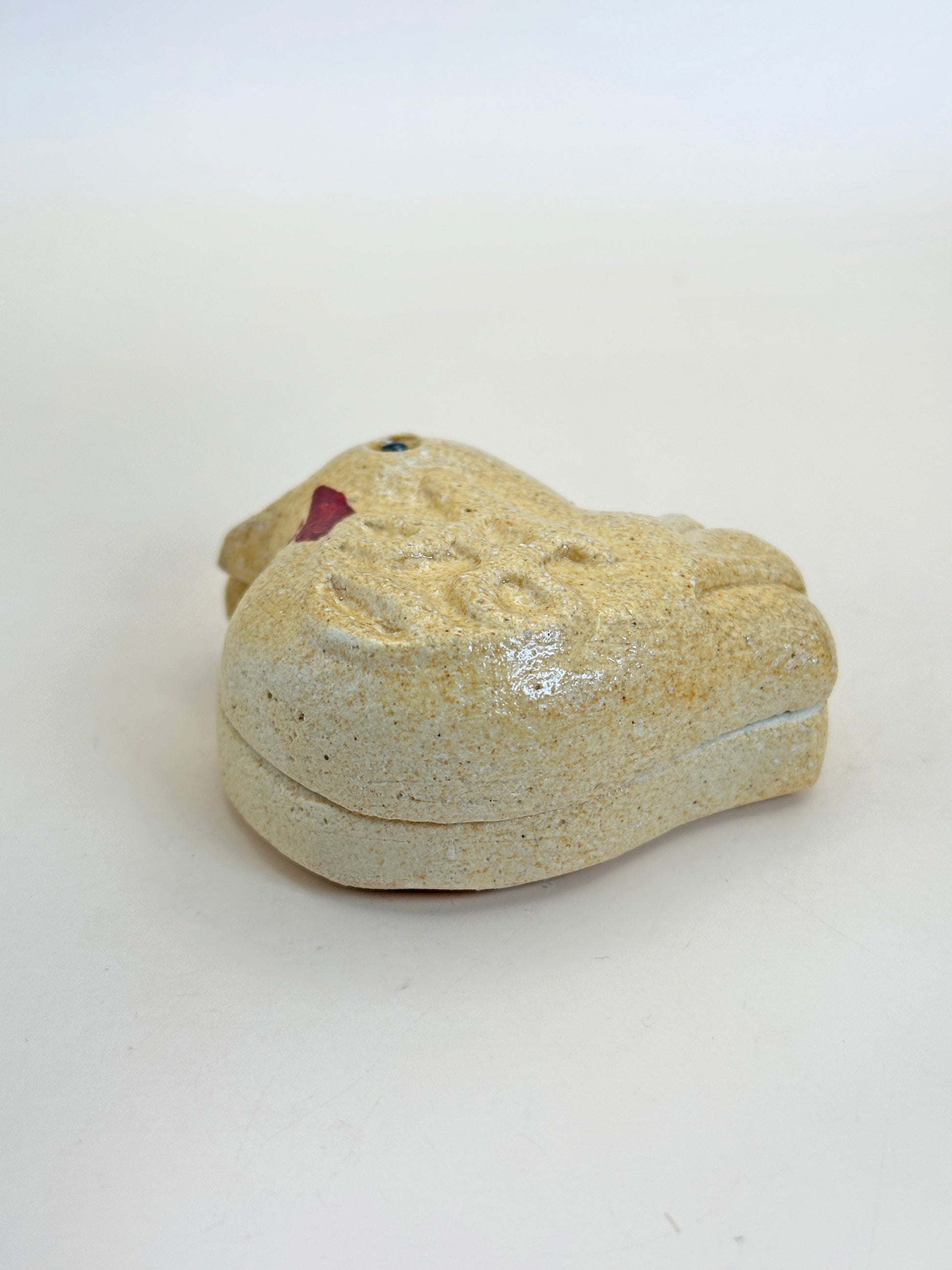 Cette boîte à encens Kutani-yaki de Takashi Kitamura allie avec élégance une forme ludique à un savoir-faire raffiné. Représentant une poule stylisée, elle célèbre le signe du zodiaque chinois (tori), symbolisant l'Année du Coq. Le caractère 酉, délicatement inscrit au dos, l'inscrit dans la série de Kitamura inspirée des douze animaux du zodiaque.