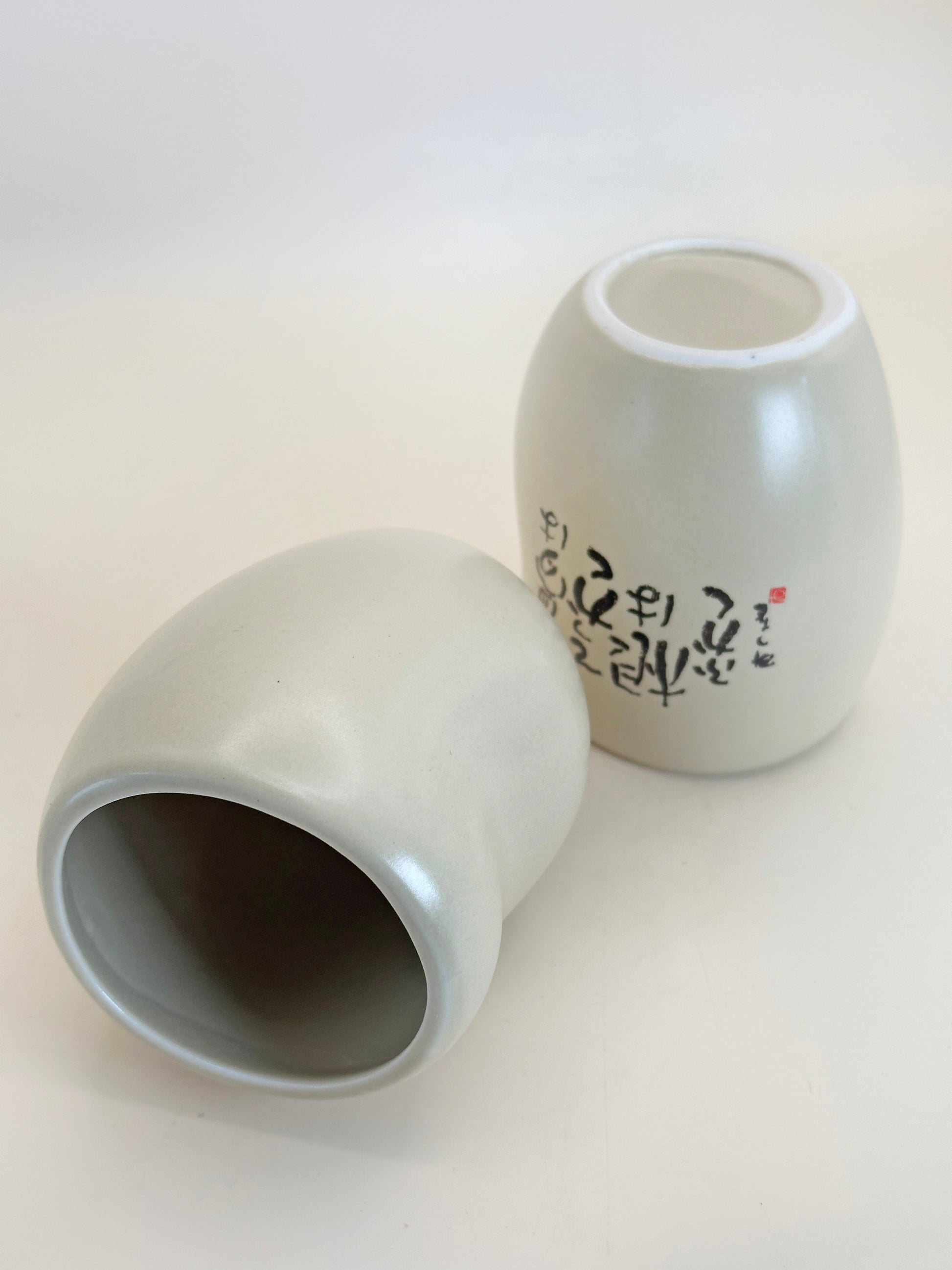 TB172 - Set of 2 Modern Yunomi Tea Cups – Calligraphy by 相田みつを