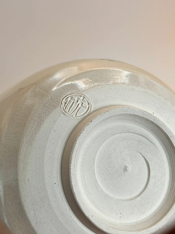 Never used. This chawan (matcha bowl) is a fine example of Kyoto’s Kiyomizu-yaki tradition, blending refined craftsmanship with modern artistic expression. The bowl is finished in a soft ivory glaze with delicate crackle patterns that reflect the wabi-sabi aesthetic of impermanence and natural beauty.