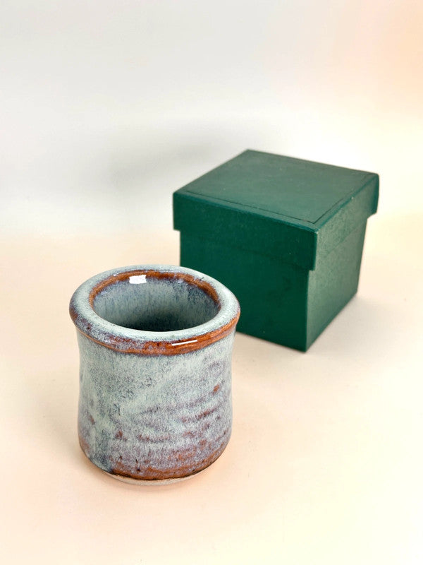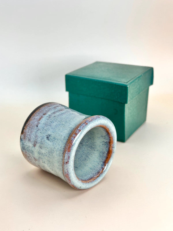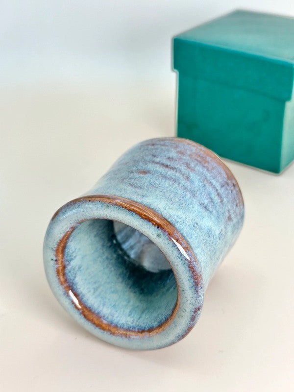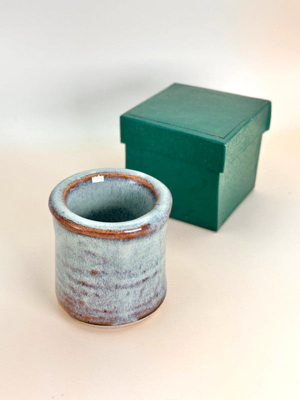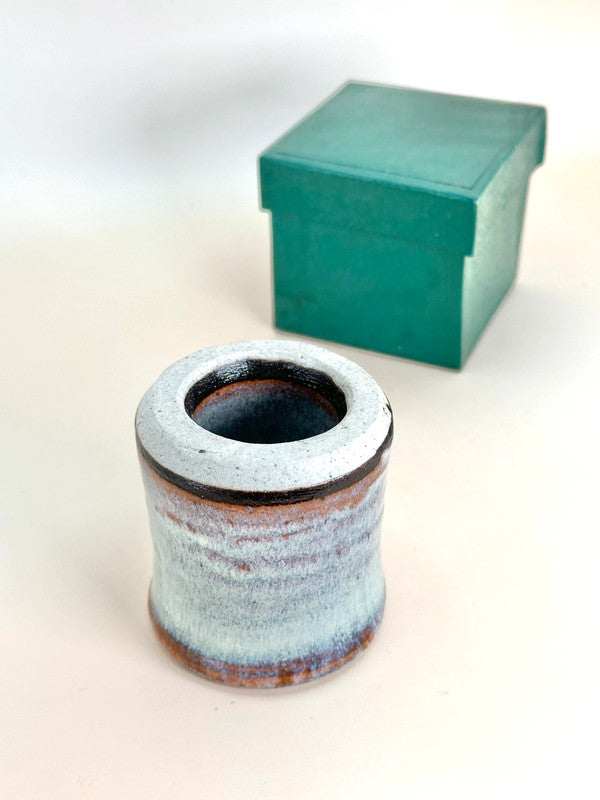 Its cylindrical form is both functional and graceful, making it suitable not only for chanoyu practice but also as a small stand for resting a teapot/ small cooking pod lid in daily use. Presented with its original green storage box, this futaoki is a harmonious blend of practicality and artistry, reflecting the quiet elegance of Aizu ceramics.