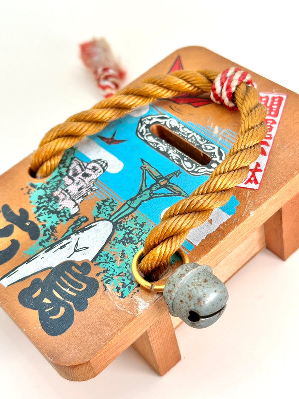 Decorated with a colorful illustrated scene, this tsuko-tegata is not only a commemorative pass-style tag but also doubles as a functional coin bank, making it a charming blend of tradition and utility. The geta-shaped body has a coin slot on the top, and a removable bottom panel allows for easy access to stored coins.