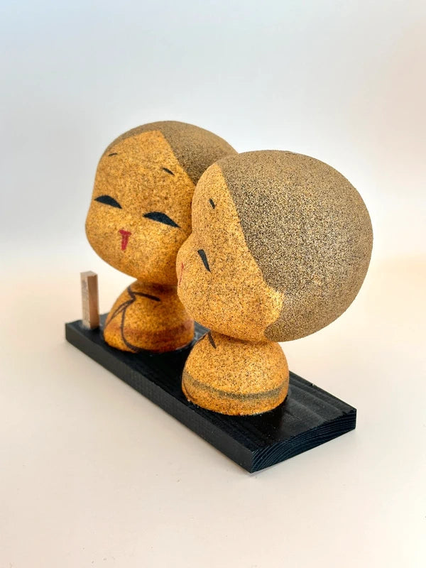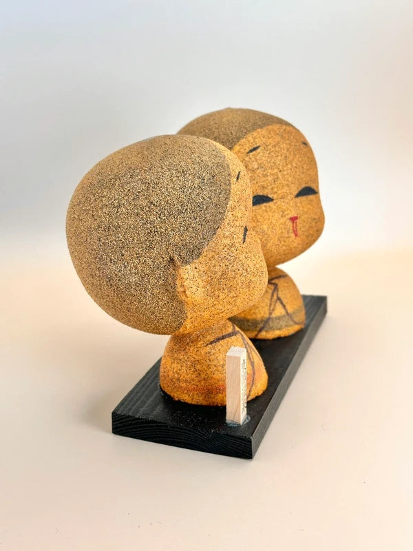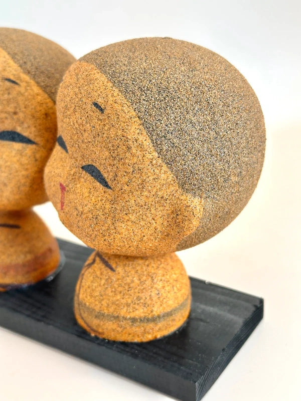 This charming kokeshi dolls is a delightful souvenir from Tōgō Onsen (東郷温泉), a historic hot spring town in Tottori Prefecture, Japan. What makes them truly unique is their texture, they are made using actual Tottori sand, evoking the region’s most iconic natural landmark, the Tottori Sand Dunes (鳥取砂丘).