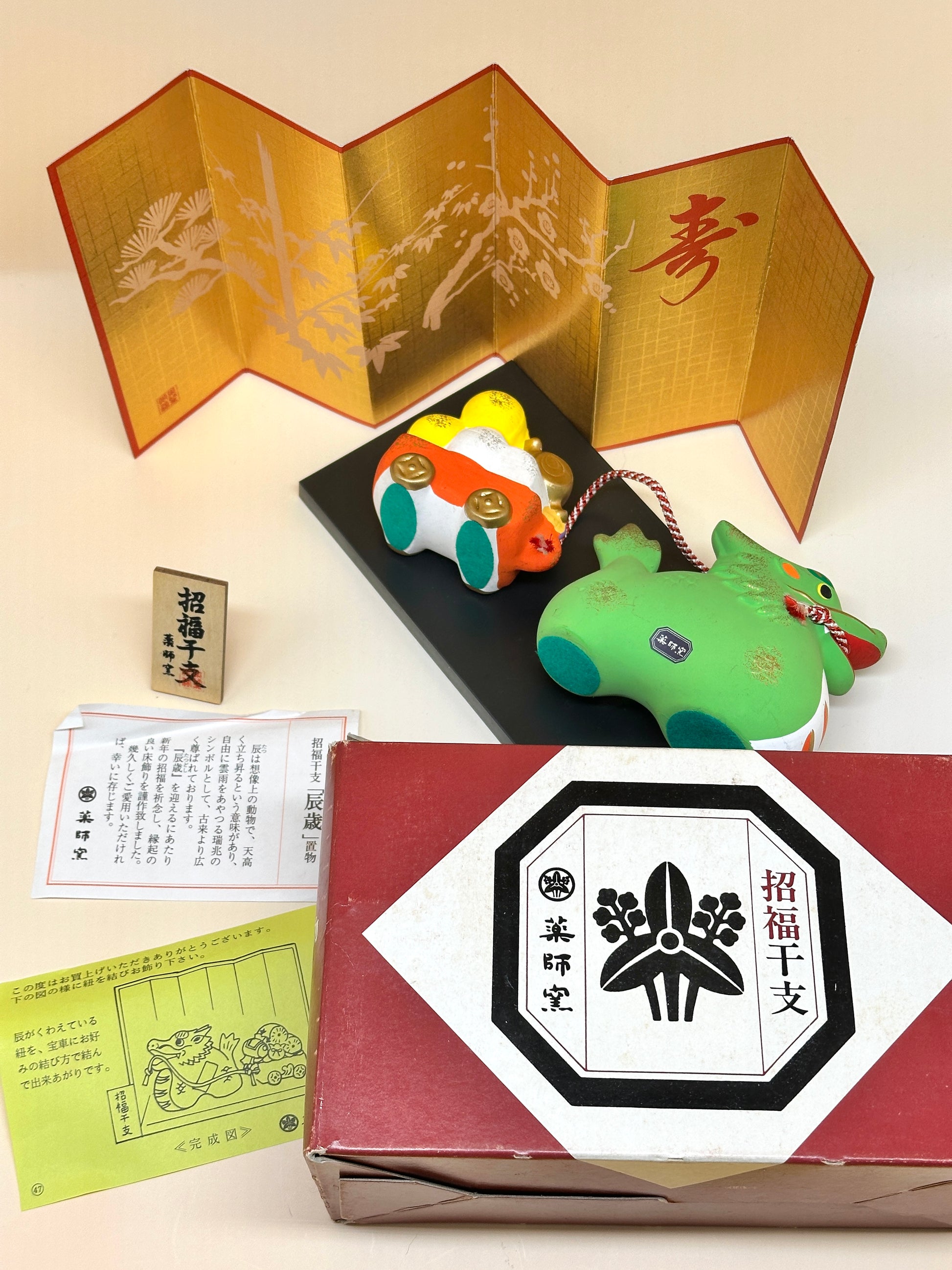 Celebrate the spirit of the dragon with this exquisite Shofuku Eto (招福干支) zodiac figurine, crafted by the esteemed Yakushigama (薬師窯) kiln. Known for over a millennium of ceramic artistry in Japan, Yakushigama is revered for its beautifully detailed zodiac and good-luck figurines, each embodying tradition, craftsmanship, and cultural significance.