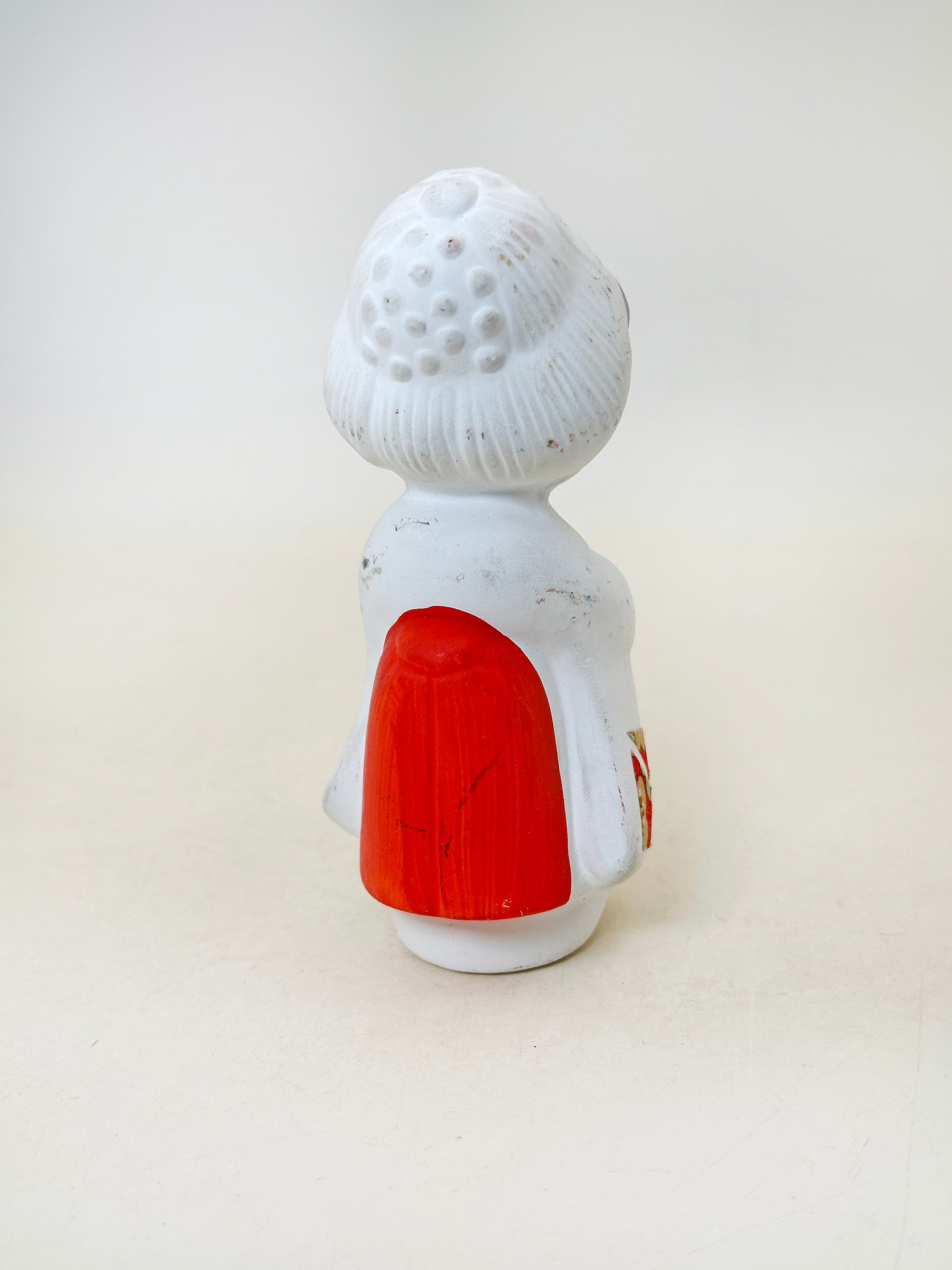 Crafted from fine clay and carefully hand-painted, the doll showcases the hallmark qualities of Hakata ningyō: smooth surfaces, soft coloration, and an emphasis on graceful realism. The piece captures a sense of narrative and atmosphere, evoking moments of everyday life and seasonal charm in Japan.