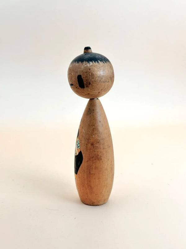 This sōsaku kokeshi from Aomori Prefecture is part of a special themed collection titled “Pleasure Districts and Kabuki in Ukiyo-e Society” (浮世絵社会の遊里と歌舞伎). Inspired by the vivid world of ukiyo-e, traditional woodblock prints depicting the "floating world" of Edo-period urban life, this doll beautifully channels the elegance and theatricality of kabuki performers and the refined glamour of Japan's historical pleasure quarters.