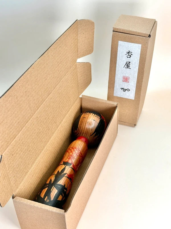 Despite its compact size, this kokeshi radiates presence, an embodiment of Naruko tradition with a personal twist. It captures the quiet, rustic beauty of Japan’s northern folk art heritage while celebrating the Takase family’s multi-generational legacy. Tokio Takase was born on March 18, 1928, in Yasumiya, Towada-machi, Aomori Prefecture, into a family deeply involved in the kokeshi tradition. His father, Yoshiharu Takase, operated a souvenir shop and created kokeshi dolls, passing down the craft to his son.