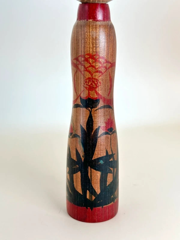 Tokio began woodcarving at a young age and, after a brief period producing kokeshi dolls in the 1960s, returned to it full-time in 1969 as his father aged. From that point on, he balanced kokeshi production with managing the family souvenir and boat rental business near Lake Towada. A dedicated regional craftsman, he also mentored Kazumasa Kobayashi, a relative who later carried on the tradition. Takase’s works are valued for their strong forms, vivid floral decoration, and the quiet spirit they convey. He remained active until his later years and passed away in 2011 at the age of 84.