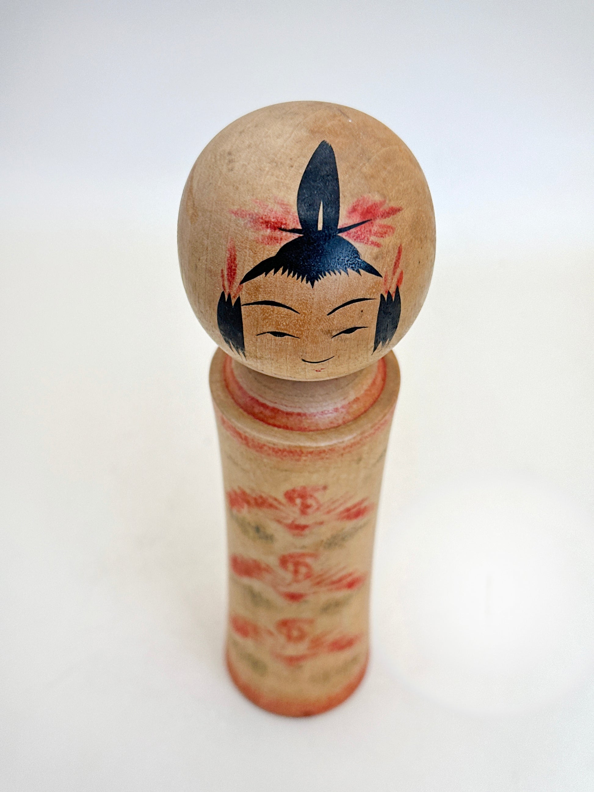A Naruko-style kokeshi crafted by Hideo Onuma (大沼秀雄, 1930–2023), a revered artisan from one of Naruko’s historic kokeshi-making families.