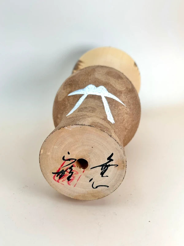 A perfect condition of Sōsaku Kokeshi (創作こけし) titled "Mushin" (無心) is a creation by the renowned artisan Watanabe Masao (渡辺正雄, 1917-2007). Known for his distinctive approach to kokeshi-making, Watanabe Masao's works emphasize simplicity, natural beauty, and deep philosophical meaning.