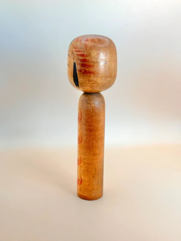 This piece is particularly noteworthy for its warm, burnished patina, an effect of decades of age, adding depth and historical richness to its character. It is a fine example of Sanzo’s mature style, created in the later phase of his life during a brief return to kokeshi-making in the 1940s. A collector's gem and a testament to the enduring beauty of traditional craftsmanship.