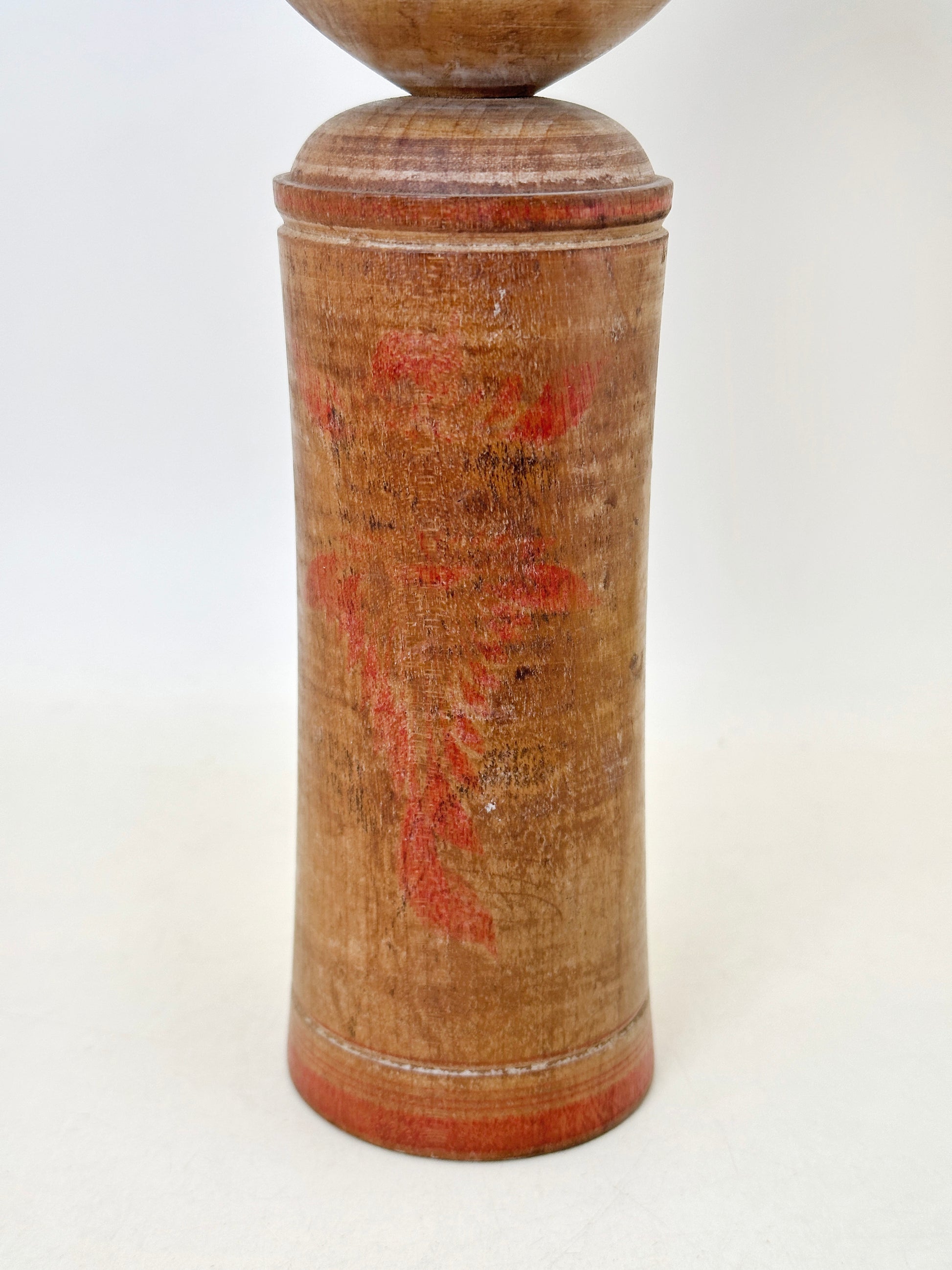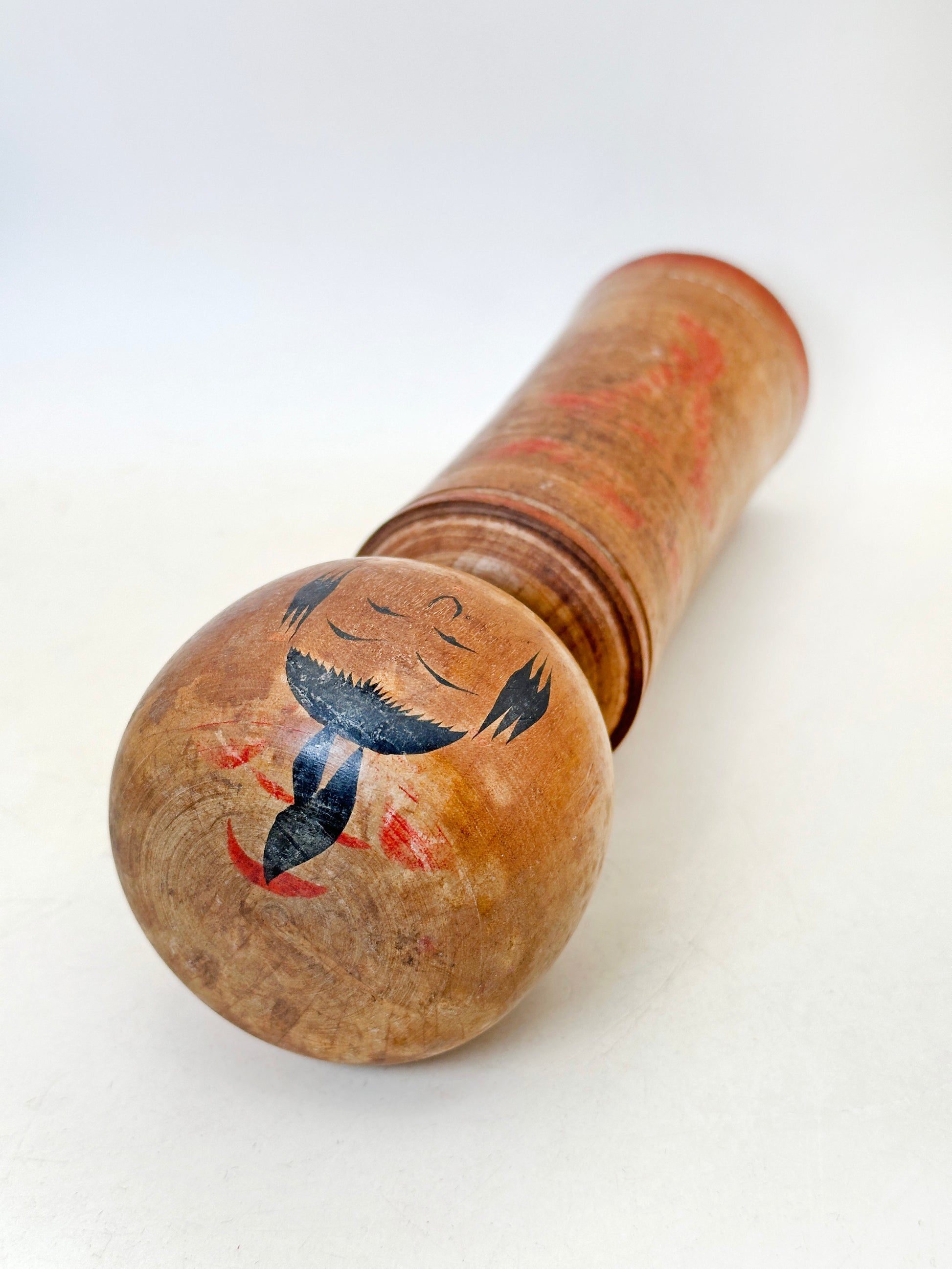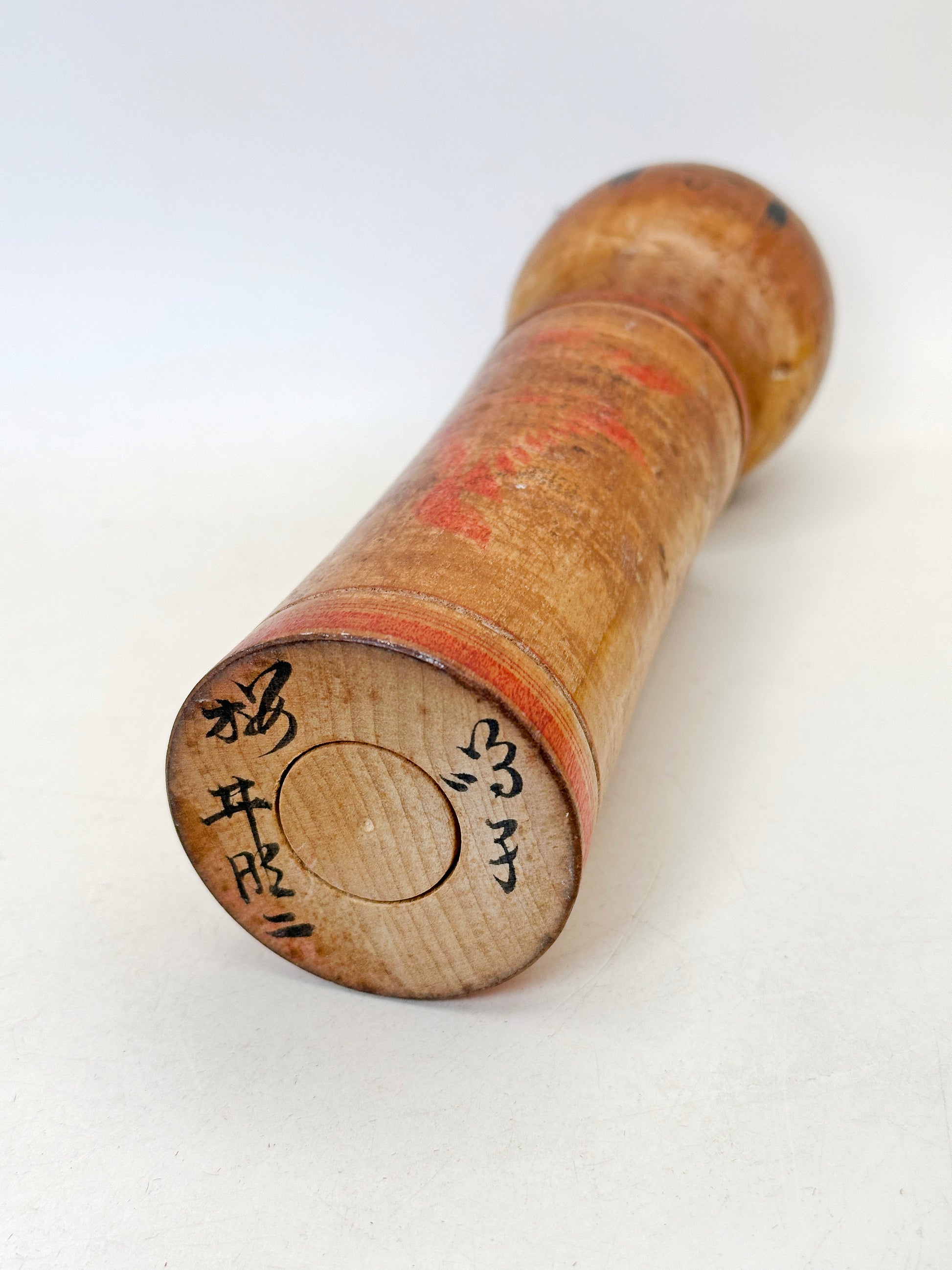 This traditional Naruko kokeshi was crafted by the esteemed artisan Shoji Sakurai (桜井昭二, 1927–2011), a respected figure in the world of kokeshi who helped shape the postwar identity of the Naruko tradition.