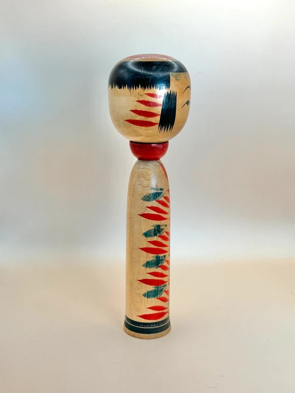 Over the decades, Kamata built an enduring legacy of stable, stylistically consistent kokeshi production. His work reflects a harmonious blend of Yajirō and Shimonohara influences, notably that of Watanabe Kojiro, under whom he worked during the early 1920s. He set up his own studio in Shiroishi City in 1923 and began instructing others—including his son Koichi and nephew Kokubu Eiichi—passing down his techniques to future generations.