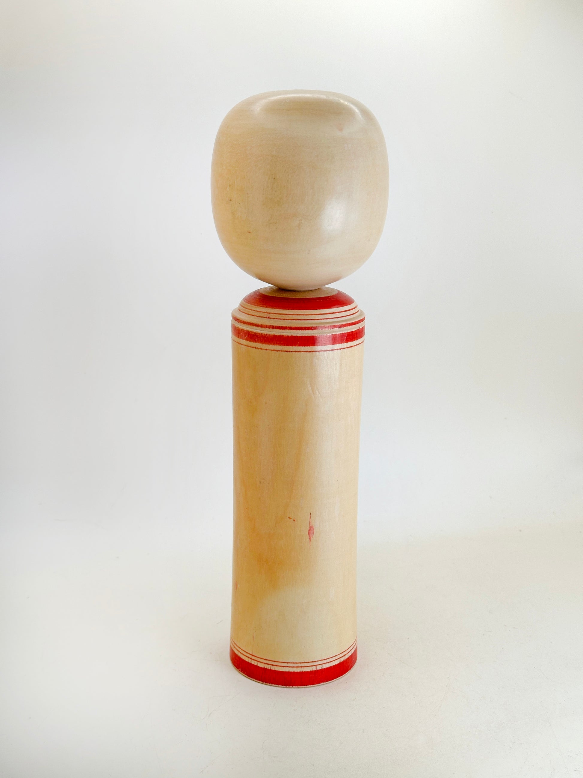 Shoji was active throughout his life, even demonstrating his skills on the foot-powered lathe just months before his passing in 2011. This doll stands as a testament to his lifelong dedication and artistry within the world of traditional kokeshi.