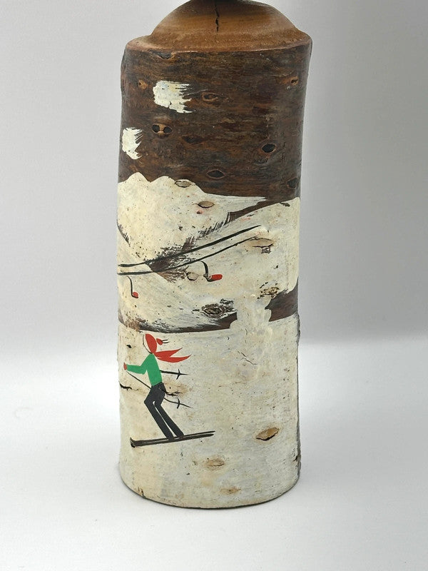 Vintage kokeshi doll from Zaō Onsen, Yamagata, Yamagata. Zaō Onsen (蔵王温泉) is a famous hot spring area on Mount Zaō in the northern part of Honshū, the main island of Japan. The Zao Mountain is known for its conifer trees which become encrusted and solidified by January due to the hard rime phenomenon, which is caused by heavy snow and winds of freezing temperatures. These formations are known as "snow monsters" or juhyo in Japanese.