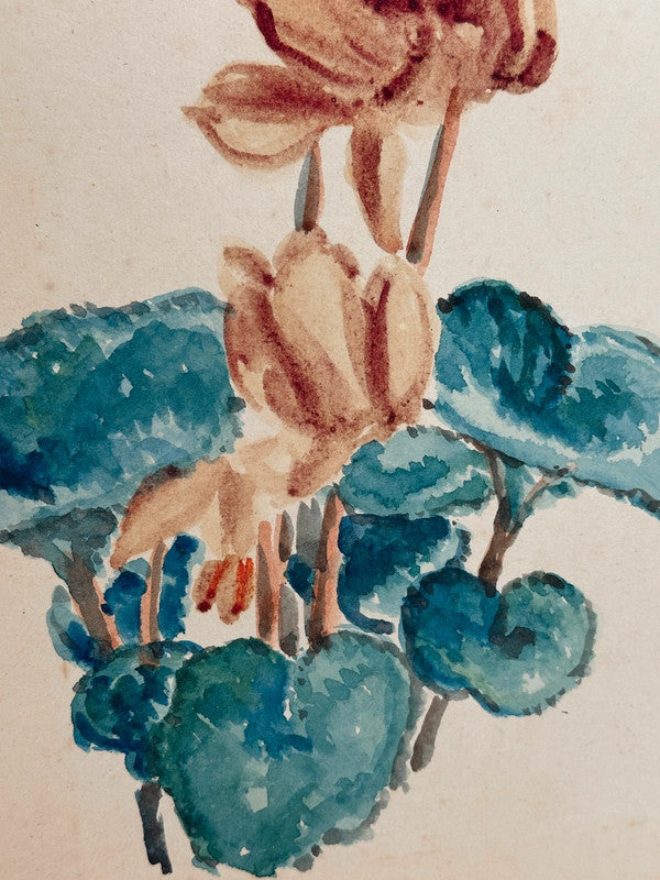 Vintage shikishi original artowrk card of the lotus (蓮, hasu). It is a powerful symbol in Japanese and East Asian culture, representing purity, enlightenment, resilience, and spiritual awakening. Its deeply rooted in Buddhism, Shintoism, and traditional aesthetics.