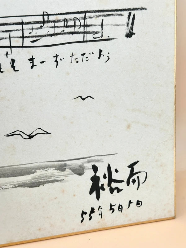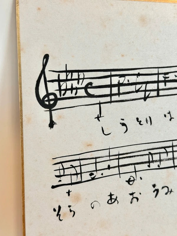 The work exudes the quiet introspection and delicate aesthetic of mid-20th century Japan, capturing the cultural spirit of the Shōwa era. A unique collectible for lovers of Japanese calligraphy, vintage music ephemera, and post-war art.