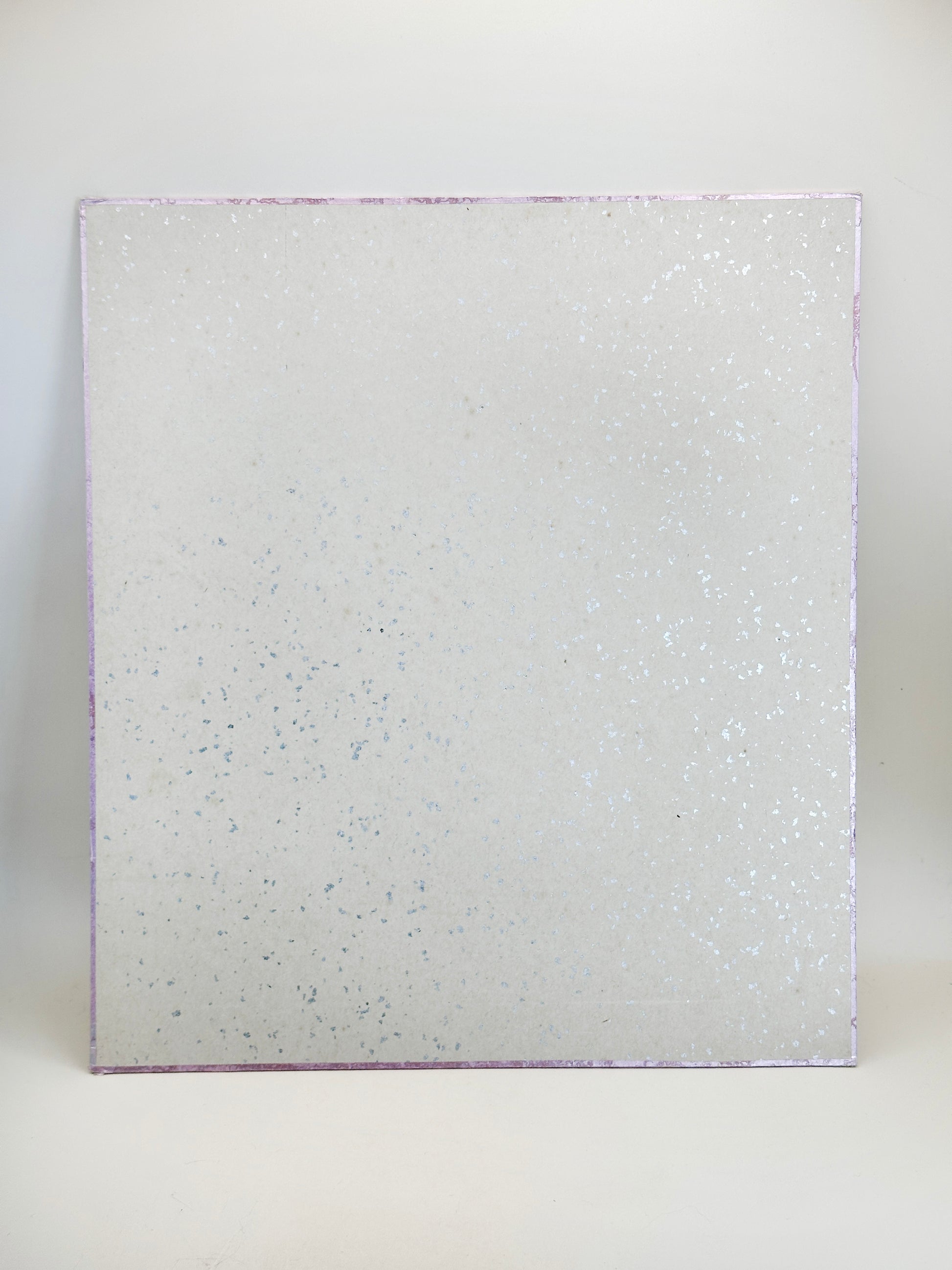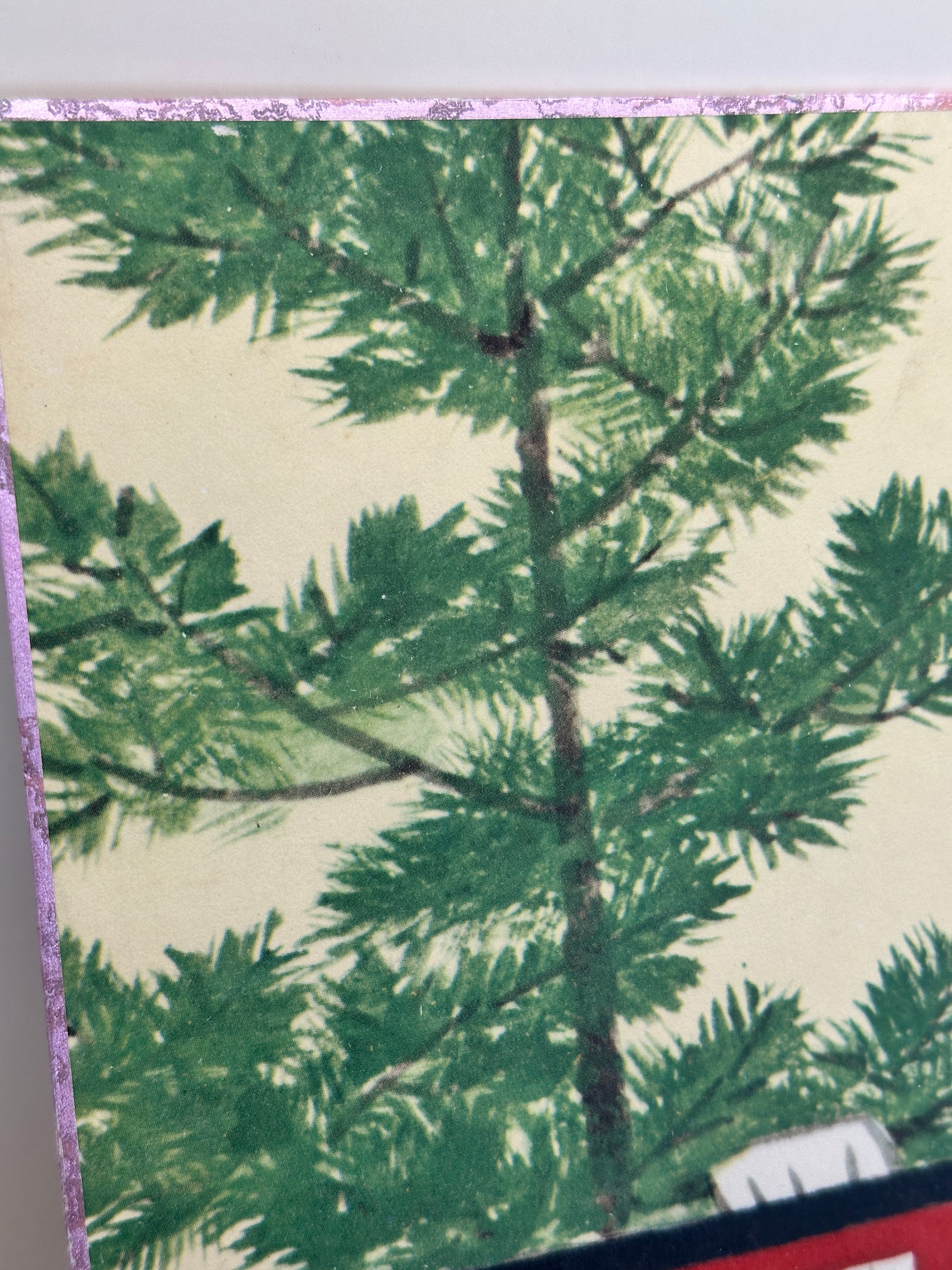 The float’s decorative framework, shown with vibrant red torii-like beams, ornate gold fittings, and crisp white shide (紙垂), evokes the sacred atmosphere of Kyoto’s centuries-old festival culture. Behind it stands a stately evergreen pine, painted in delicate Nihonga-style textures. The pine, an emblem of longevity and unwavering spirit, enhances the auspicious feeling of the piece.