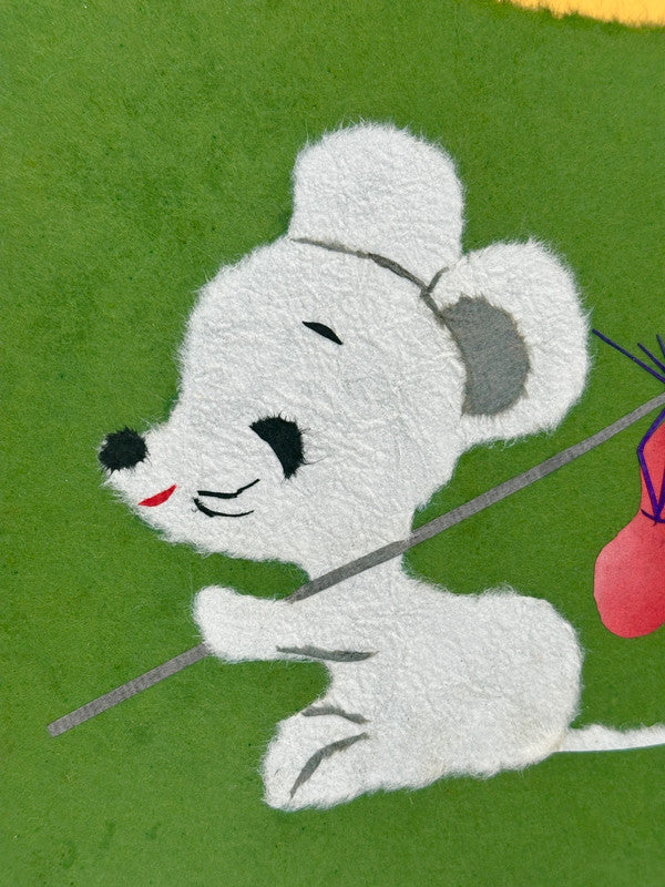 Japanese Chigiri-e Shikishi Art from 2012. This delightful shikishi board features a charming white mouse (rat) created in the traditional Japanese chigiri-e (ちぎり絵) technique, where textured washi paper is torn and layered to form soft, expressive images. This piece was made to celebrate the Year of the Rat (子年 - Ne-doshi), corresponding to Heisei 24 (2012) in the Japanese zodiac cycle, as indicated on the included decorative folder.