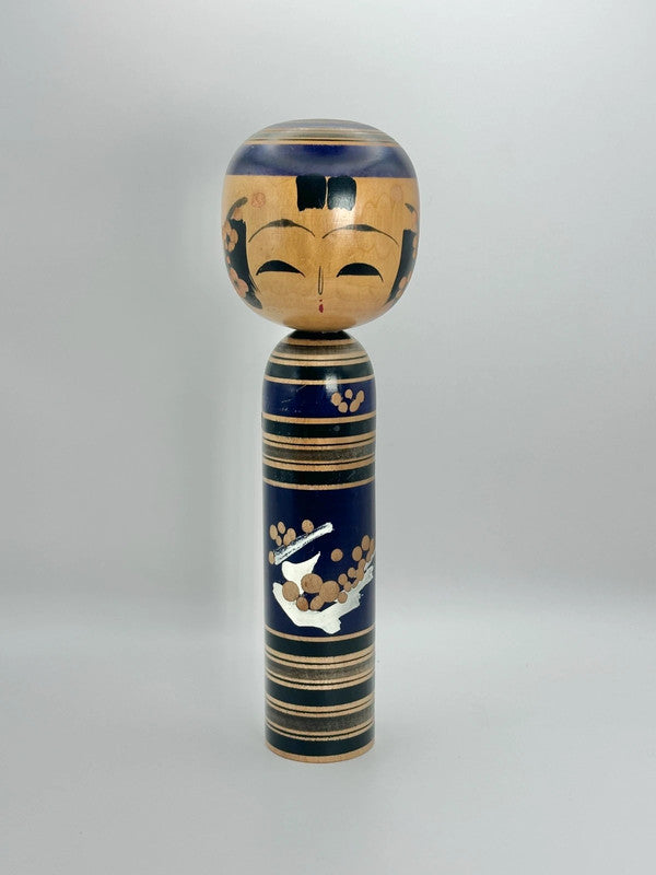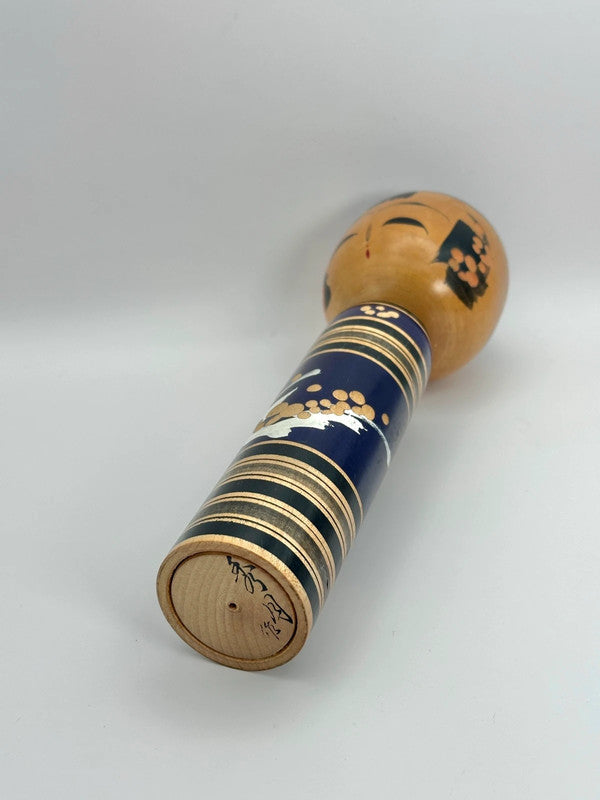 This sosaku creative Kokeshi doll is called ‘白梅’ ‘Shiraume’ which means white plum blossoms. Celebrated for his mastery in Tsuchiyu-style Kokeshi. It was created by an award-winning artist 佐々木克己 Katsumi Sasaki.