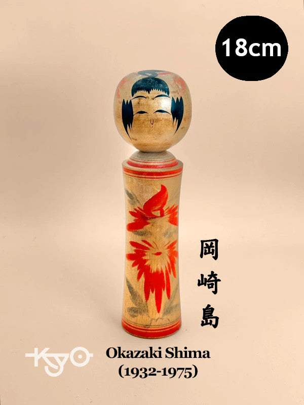 Okazaki Shima, originally from Miyagi Prefecture, was active primarily in the mid-20th century and is known for producing dolls in the Naruko tradition. Though lesser-known than some of her male counterparts, her work is admired for its distinctive charm, refined brushwork, and faithful representation of traditional motifs.