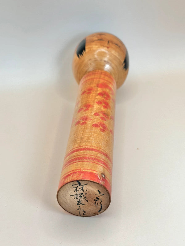 The subtle restoration of traditional Kurayoshi-era designs is evident in the composition, echoing styles his father Seizo originally created. The harmonious balance of form, color, and expression makes this doll a refined addition to any kokeshi collection.