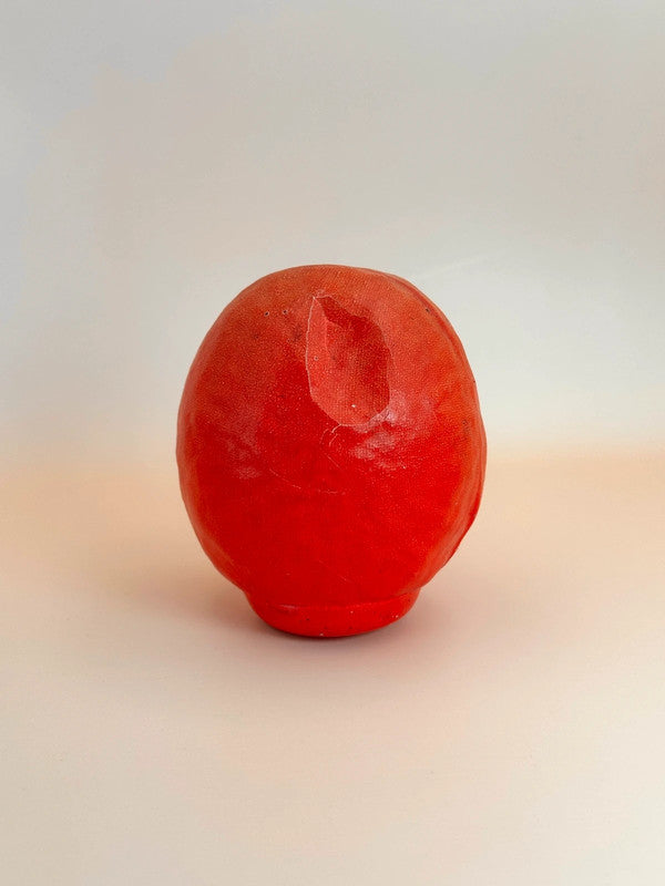Vintage papier maché daruma doll. The Daruma doll traces its origins to Bodhidharma, who, according to legend, meditated for nine years at Shaolin Temple, causing his limbs to atrophy. During the Edo period, Japan suffered the Tenmei Great Famine, severely affecting Takasaki. In response, Master Dong Yue carved the first “Dharma Tumbler” doll, inspired by the "One-Stroke Daruma" painting, and taught locals to craft and sell them for both protection and livelihood.
