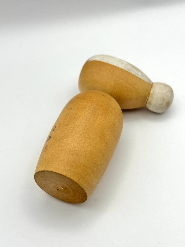 One vintage Japanese grandmother kokeshi doll from Shirahama, Japan. This is a onsen souvenir kokeshi doll. Shirahama is a resort town on the south coast of Japan’s Wakayama prefecture. It's known for its hot springs and quartz-sand beach. Just offshore, Engetsuto Island has a rocky, sunset-framing arch.