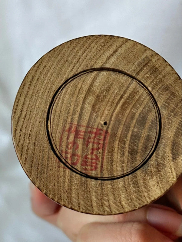 Sendai kokeshi by Kawamura Shoji 川村昭治, the bottom has his stamp written 「カワムラ作の印 」His works are always detailed painted with a glossy wood finishing.